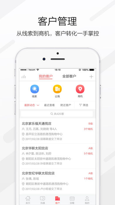 紅圈CRM是一款面向大客戶和項目制銷售團隊的移動CRM軟件,幫助企業對客戶信息以及銷售人員和客戶的互動情況進行跟蹤,打通從銷售線索到客戶、商機、合同、訂單直至回款的全流程,幫助企業縮減銷售周期、提升業績。